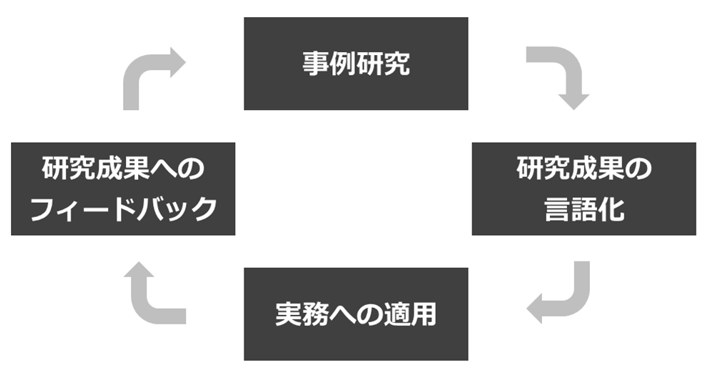 しかし、一旦研究成果を言語化できれば、これを実務に適用できるようになります。実際に実務でやってみると案外うまくいかない部分も見えてきて、それが次の研究テーマに繋がります。そうして、研究成果がブラッシュアップされていきます。