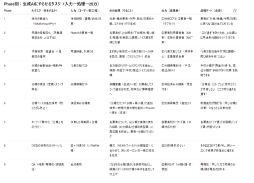 その際に、各プロセスを生成AIに行わせることを念頭に各タスクを検討してください。